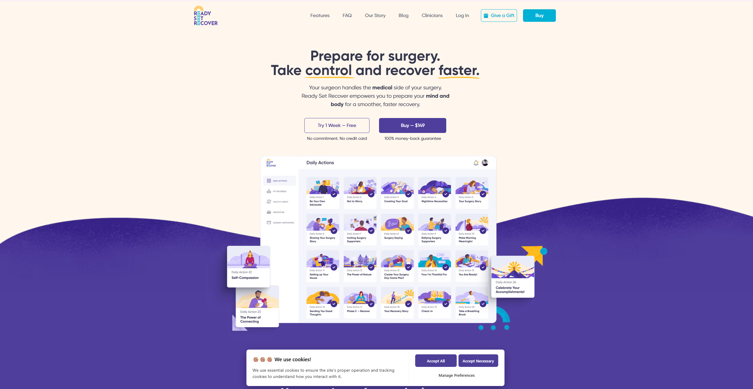 Ready Set Recover empowers people undergoing surgery, and their loved-ones, to prepare more intelligently and recover more confidently. The platform serves patients, surgical care partners, and “Surgery Supporters” with a digital platform that blends guided content, community, and interactivity.